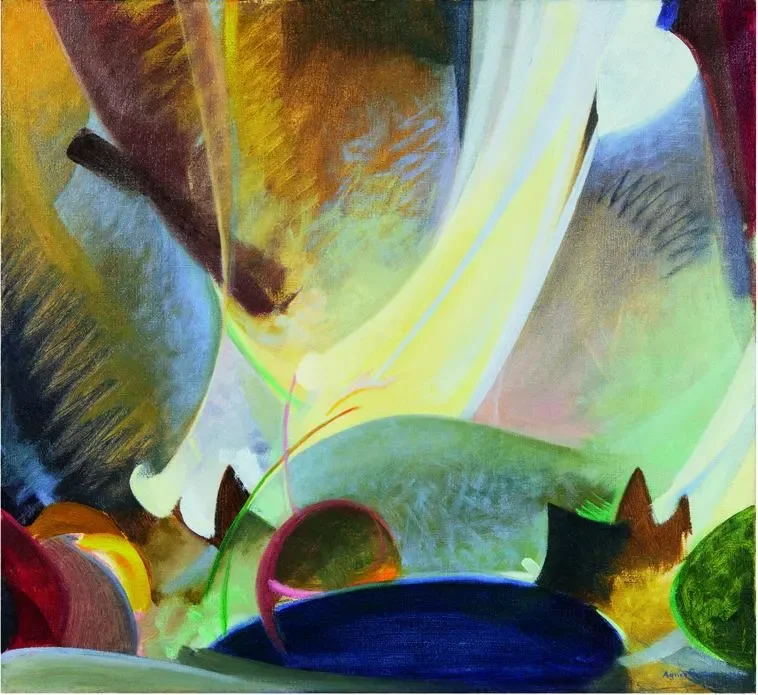 Agnes Pelton, The Ray Serene, 1925. Oil on canvas. Collection of Lynda and Stewart Resnick. PHOTO: JAIRO RAMIREZ.